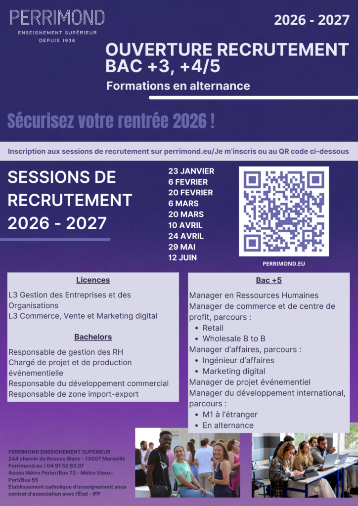 Perrimond ouvre les recrutements pour la rentrée 2026 sur ses formations en alternance de niveau Bac +3 et Bac +4/5. Cette nouvelle campagne concerne plusieurs ...