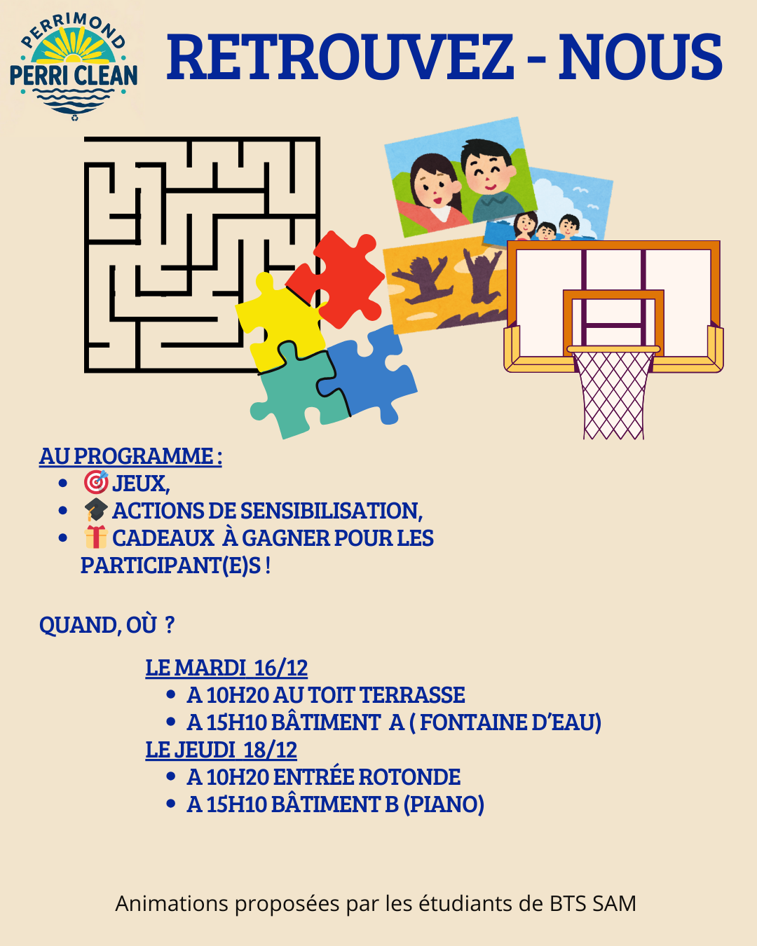 • Communication sur le tri : 3 étudiantes de 2ème année de BTS Communication ont en charge la sensibilisation au tri via différents modes de communication (affiches, vidéo, posts Instagram) Affiche 1affiche 2affiche 3vidéo de communication.